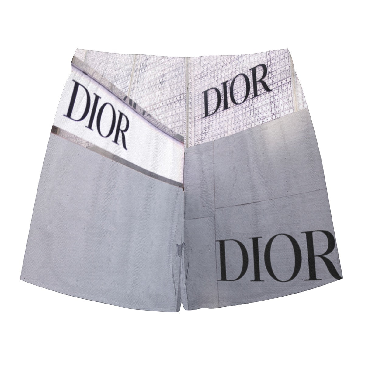 Featuring a print of Dior’s barricaded 57th Street storefront, these shorts trace the fault lines between spectacle and plywood. Worn on the body, the brand’s monumental aura collapses into textile repetition. From vitrine to surface, surface to skin.